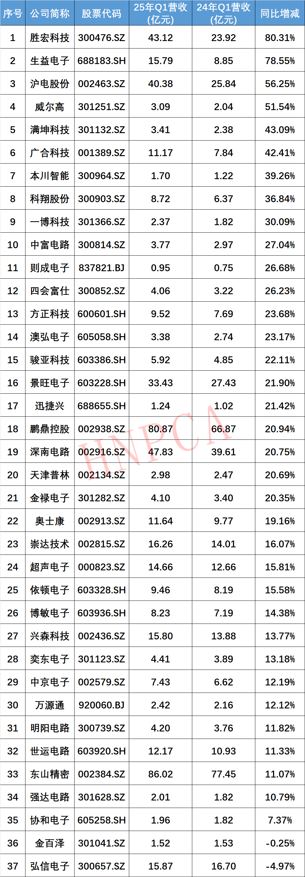 37家PCB企業(yè)營收達(dá)541.87億元,同比增長24.37%,占總營收的66.02%;有21家PCB企業(yè)營收增長超20%。